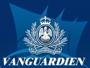 Das Wappen Vanguardiens zeigt sich heute in einer modernen und einer historischen, heraldischen Version. Vor dem tiefblau an den Atlantik erinnernden Hintergrund sind drei symbolisch angedeutete Segel vor einem die Gemeinschaft aller umspannenden Himmelstuch dargestellt. Davor breitet das Wappentier - der Sturmvogel - in einem Nest über drei Küken seine Schwingen aus.
